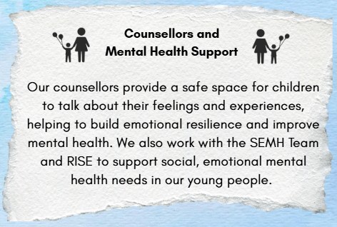 At Regent Farm, we understand that families may face times in their life when they need extra support for a wide range of reasons. Our school staff are always here to listen, support, and help wherever we can. However, there may be occasions when specialist advice is needed. To ensure families can access the right support quickly and effectively, we’ve partnered with a team of highly skilled external professionals who regularly visit our school. These experts are available to work directly with parents and children, offering timely guidance without the long waiting lists often associated with external services. Please speak to Mrs Moore, Mrs Doonan or the school office for more information about any of these services.